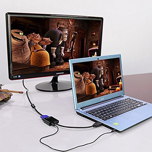 - The compact-made portable HDMI to VGA adapter connects a computer, desktop, laptop, or other devices with HDMI port to a monitor, projector, HDTV, or other devices with VGA port.
