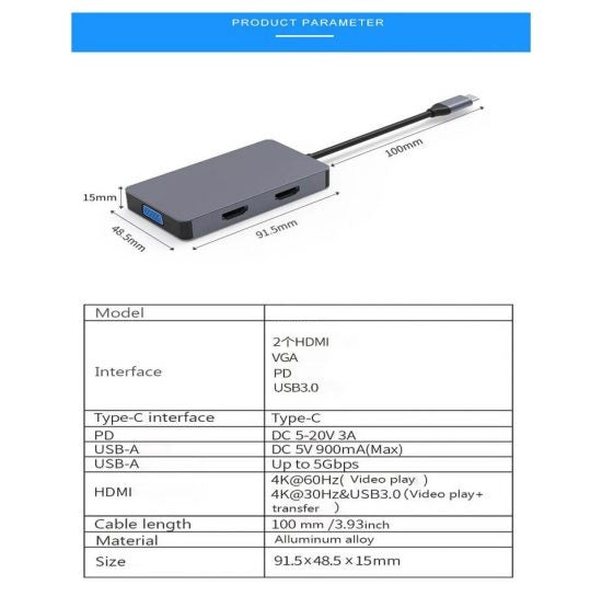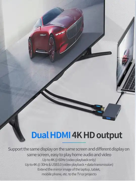 Up to 4K@30Hz & USB3.0 (video playback + data transmission) Extend the mirror image of the laptop, tablet, mobile phone, etc. to the TV or projector