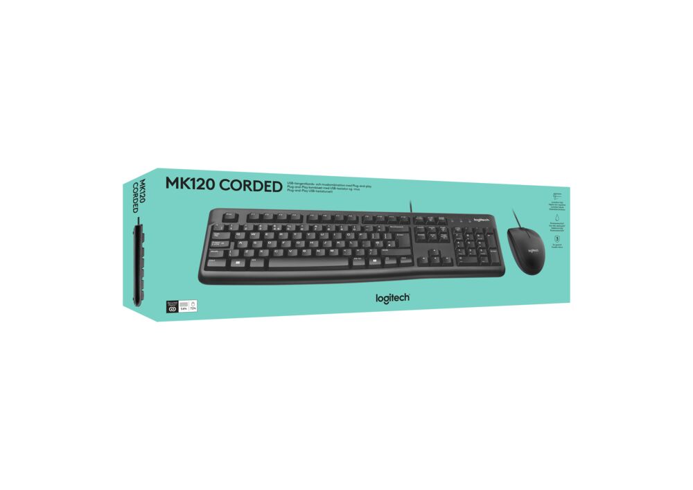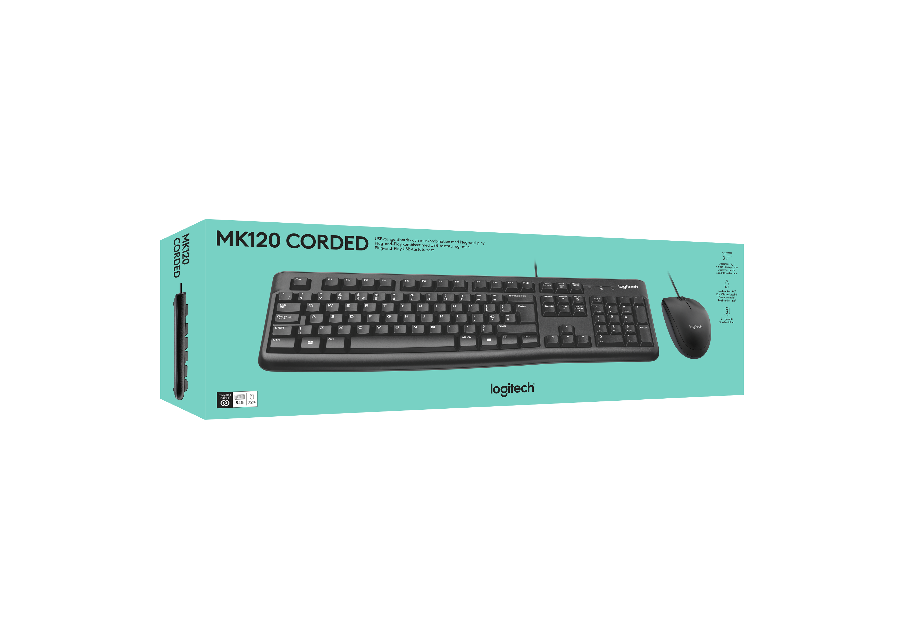 Logitech MK120 Wired USB Keyboard and Mouse Set for Windows, Optical Wired Mouse, Full-Size Keyboard, USB Plug-and-Play, Compatible for PC, Laptop - Black